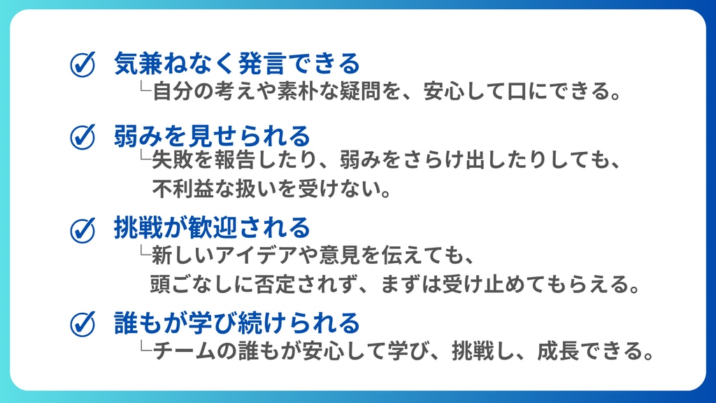 たとえ最終的にその意見を採用しないとしても、このように真摯に向き合い、尊重する姿勢を見せること。その経験こそが、メンバーの中に「このリーダーは自分の考えをしっかり受け止めてくれる」という信頼を育み、「次も意見を言ってみよう」という意欲に繋がるのです。