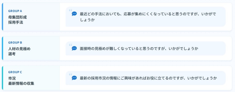 ①一定の「予想される課題感」毎にコンテンツをグルーピング