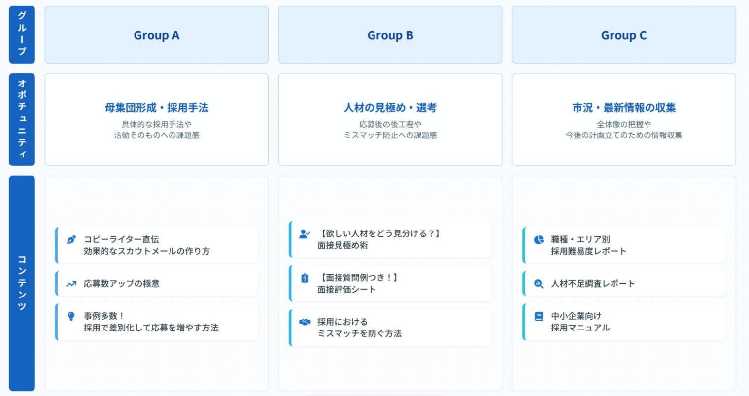 ここでは一つの手法の例として、「グルーピング×オポチュニティアプローチ」をご紹介します。
