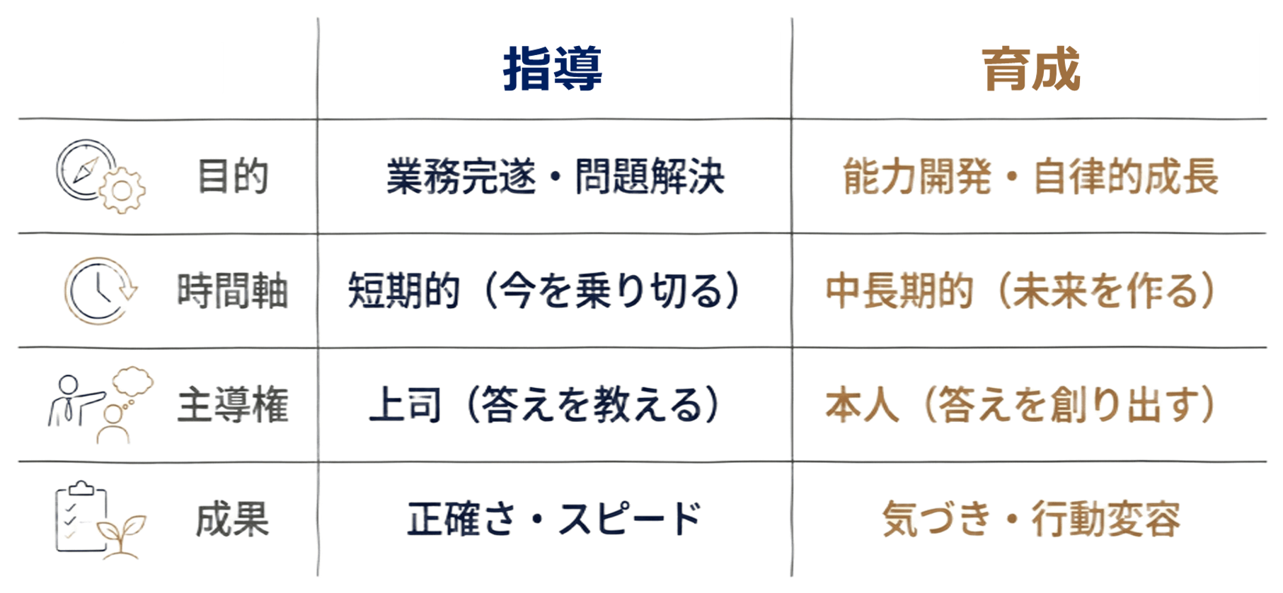 そのためには、まず「指導」と「育成」を明確に使い分ける必要があるのです。